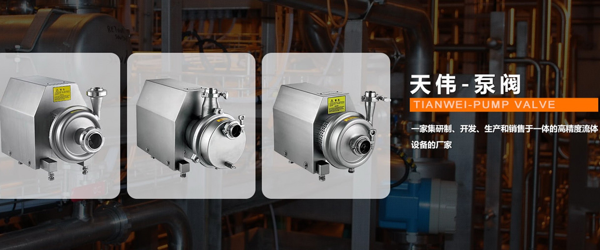 溫州天偉泵閥科技有限公司,毗鄰溫州萬噸碼頭,甬臺溫高速公路、溫州機場,地理位置優越,水陸交通暢捷,具有得天獨厚的發展優勢。是一家集研制、開發、生產和銷售于一體的高精度流體設備的廠家。 我司主要產品有:衛生級離心泵,自吸泵,CIP回程泵,防爆型離心泵,轉子泵,衛生閥門管件、管道鏈接件等產品。產品廣泛應用于食品、制藥、啤酒、乳制品、飲料、化妝品及精細化工等領域。產品均按客戶提供的技術參數及ISO、IDF、DIN 和3A等工業標準制造。各項技術均達到同行業領先水平,符合GMP藥典要求。公司堅信“用戶是我們產品...